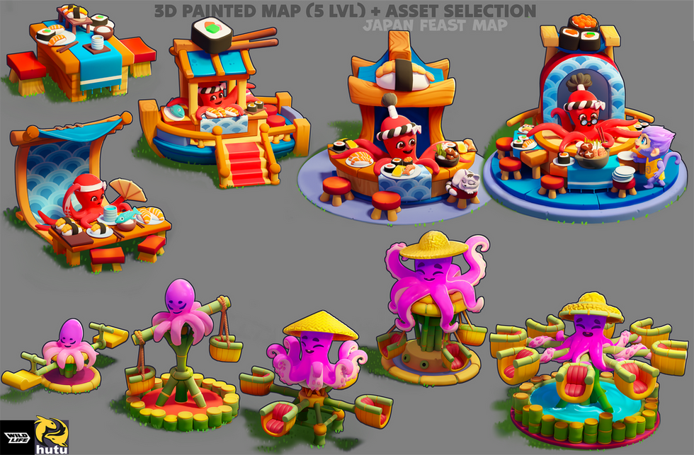 Game art assets, most are done using 3D and Paint over. Some of this are animated in Spine. Please ask for samples, we have many more